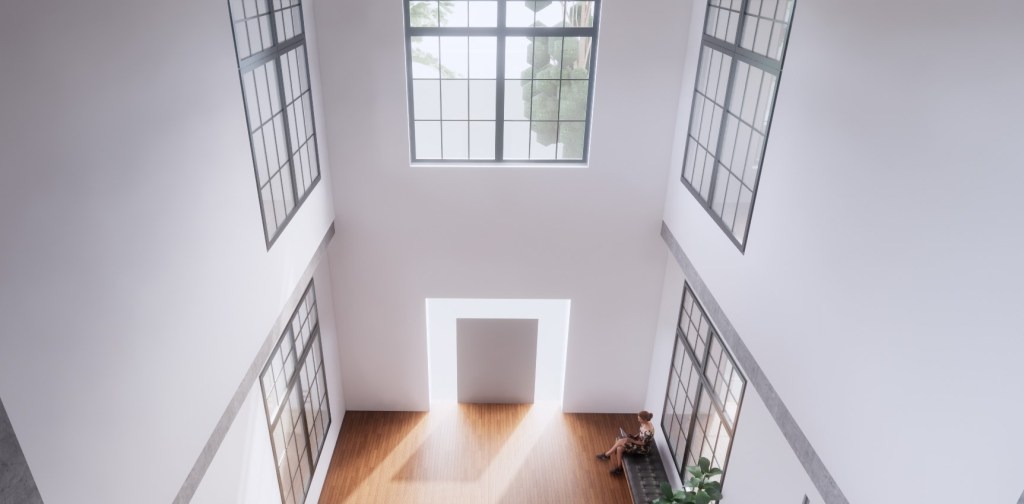 The first floor serves as the main public floor, featuring a gallery where residents showcase their work, a corner coffee shop, and a reception hall for exhibitions, performances, and cultural events. On the second floor, a curated library and hands-on workshops invite interaction between artists and the public to engage in dialogue and artistic exchange.