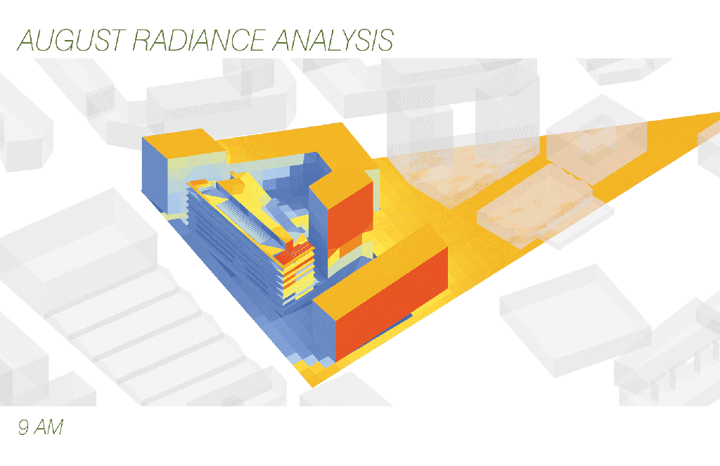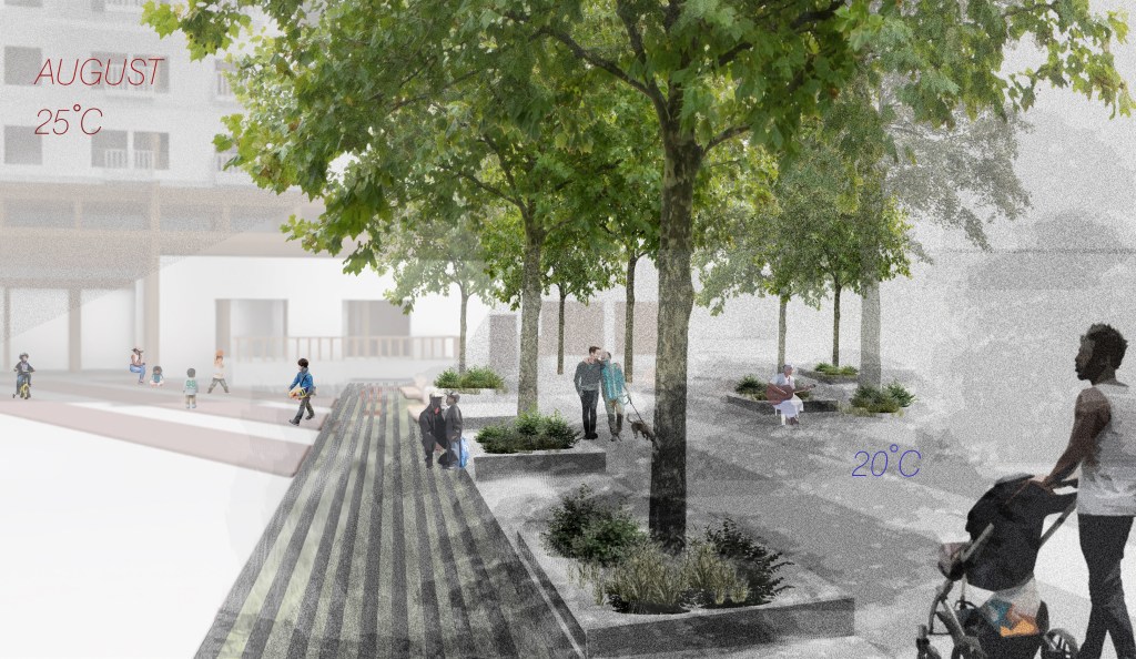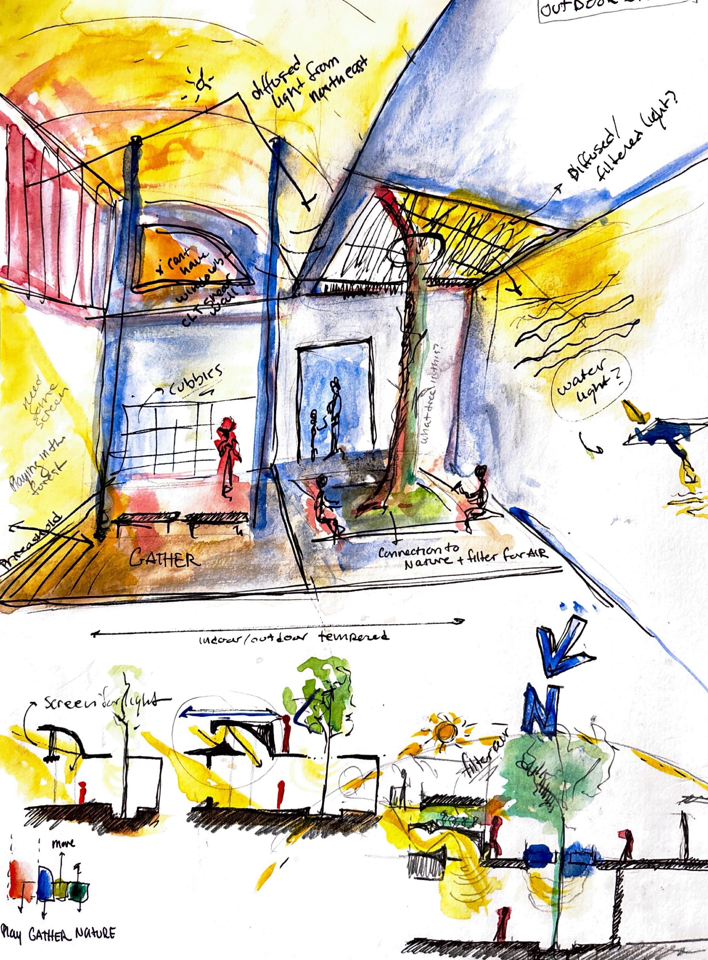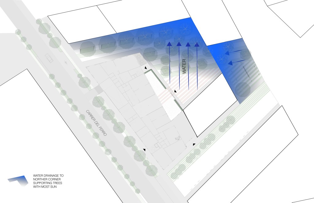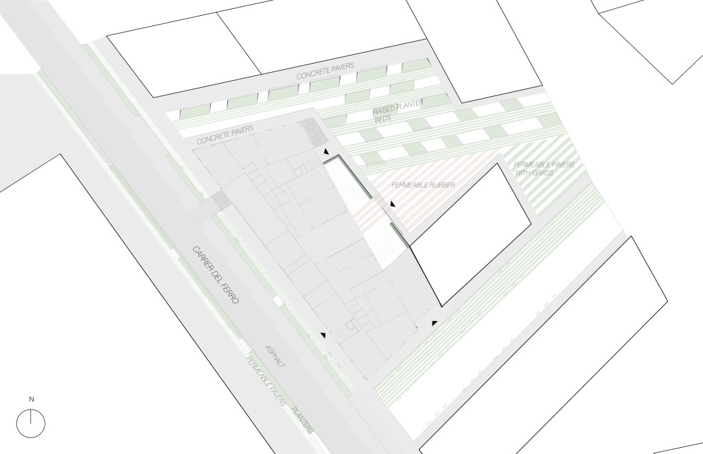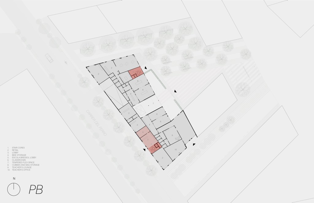 Rising summer temperatures and poor air quality disproportionately affect children and seniors in Marina del Prat Vermell. This project organizes housing and childcare around shaded courtyards and filtered air corridors, using environmental data to locate program and form